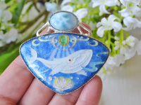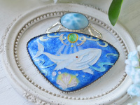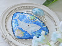 海の中を優雅に泳ぐ白クジラをデザインした七宝ジュエリーです。