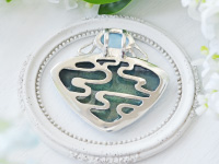 石の種類 アクアマリン 20.6ct 20.0×18.7×10.8mm 素材 七宝部:銀線、釉薬、銅板 (サイズ 60.3×42.0mm)