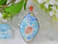 白ホヌ(白カメ)と天然石の七宝ペンダントSOLD OUT