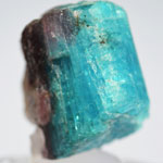 中心と表面の2層のバイカラーに結晶したパライバトルマリンで、表面のカラーは最高級のパライバカラーと言ってよいと思います。出会ったパライバの原石の中で一番に飛び込んできたネオンカラーを体現した結晶です。