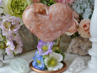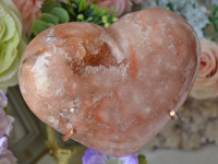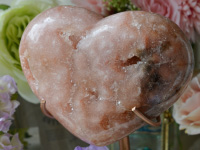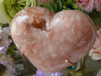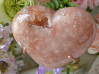 おそらく内部には空間があり、細かく結晶したクリスタル達が群生していると思われます。ハート型でこのように大きなピンクアメジストは希少です。