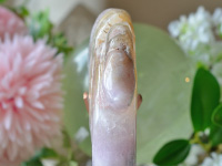 優しいラベンダーカラーのアメジストの部分と薄くヘマタイト由来のラインが走っているのが確認できます。ピンクアメジストのエネルギーは、今のあなたのままで自由に愛を感じて遊ぶように生きてよいのだという事を教えてくれます。
