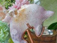ピンクアメジストの素晴らしさとイルカの自由なエネルギーが合わさった最高のクリスタルスタンドです。ピンクアメジストの意味や効果