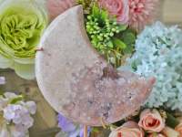 ピンクアメジストのかわいらしいエネルギーを最大限に楽しめる三日月型に磨かれたクリスタルスタンドをご紹介します。